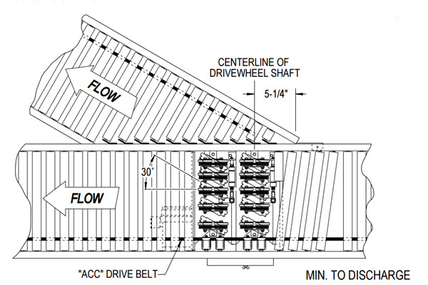 Products are automatically diverted onto adjacent 30 degree spur lines.