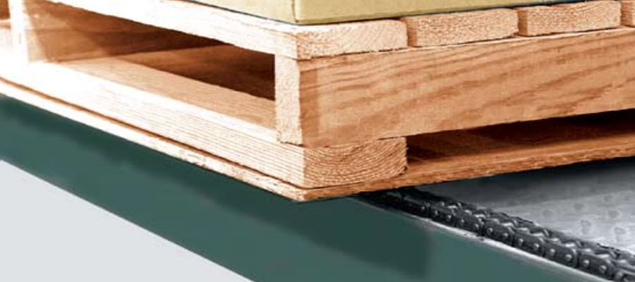 Nos modèles de convoyeur horizontal à chaîne permettent une utilisation intense des palettes avec un poids entre 5,800 lbs. et 12,000 lbs maximum.